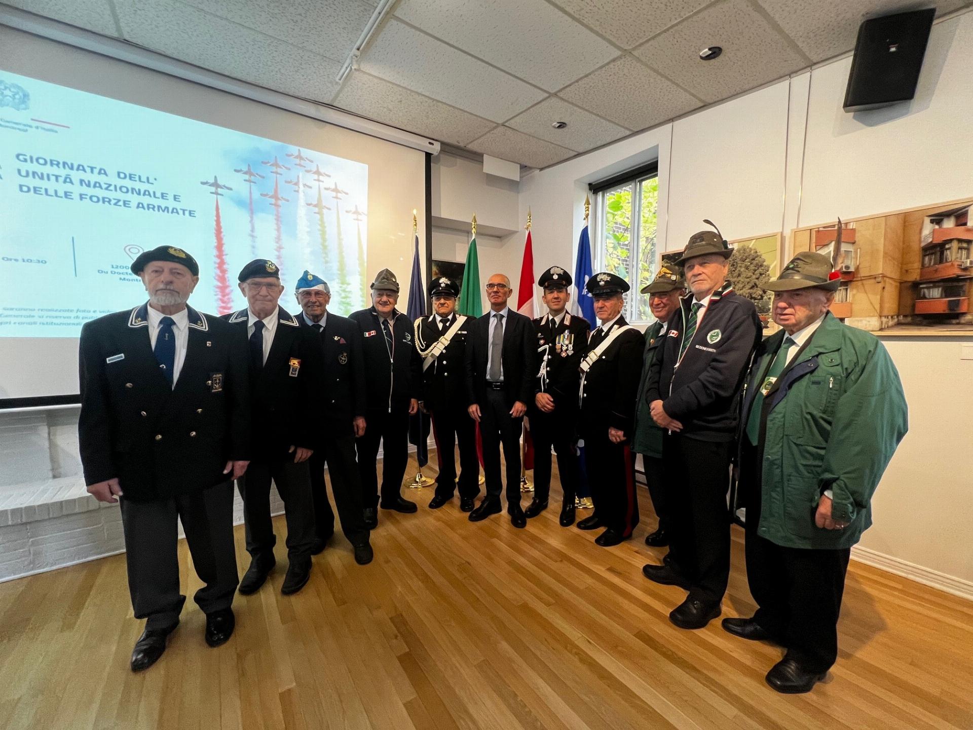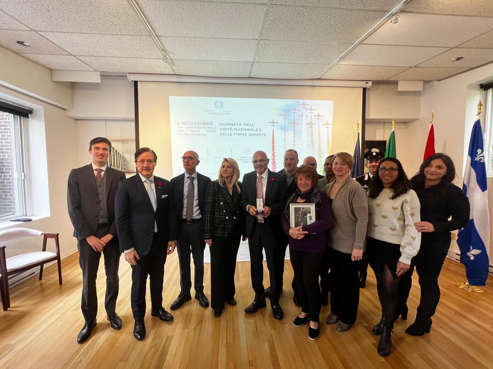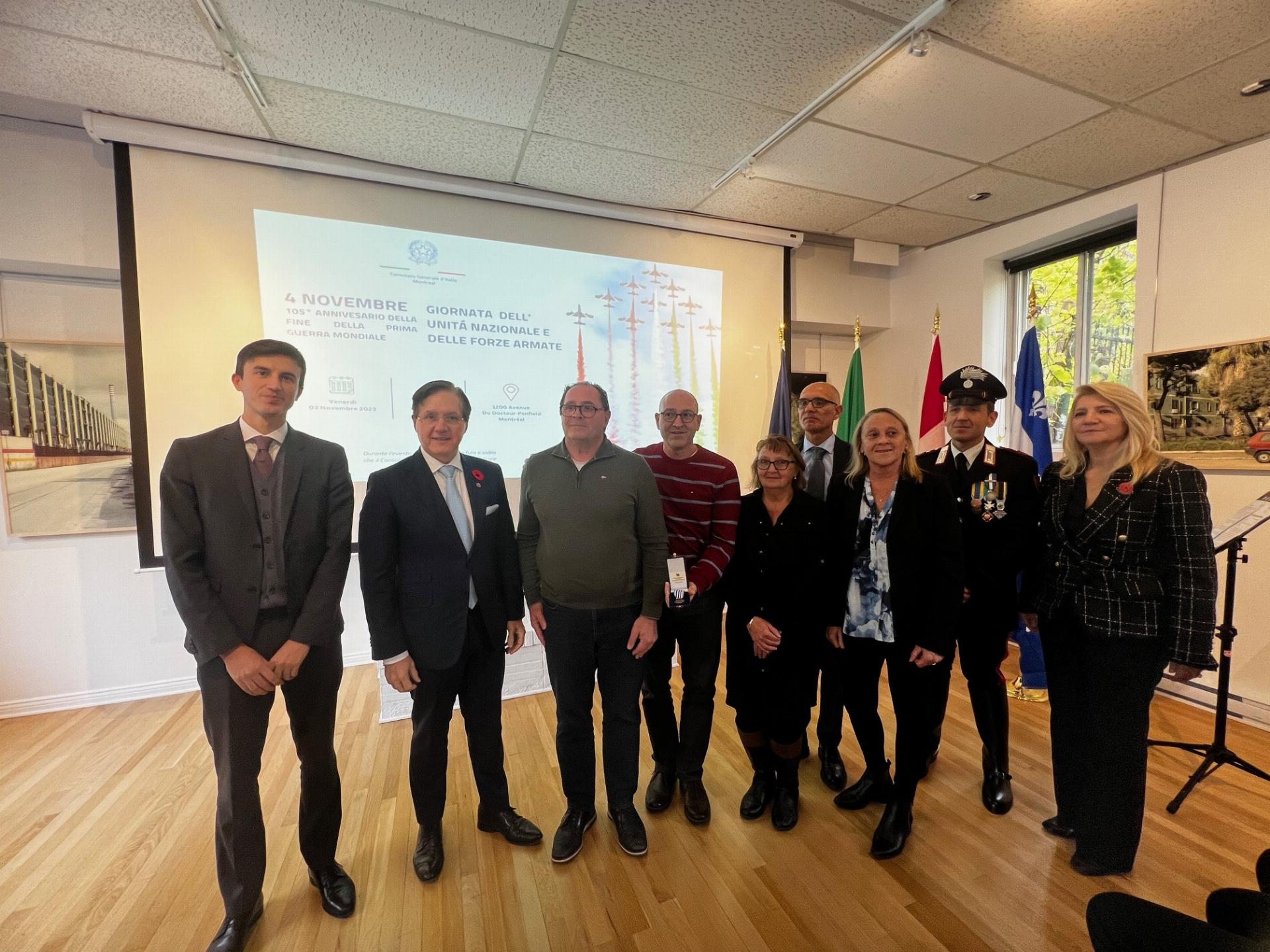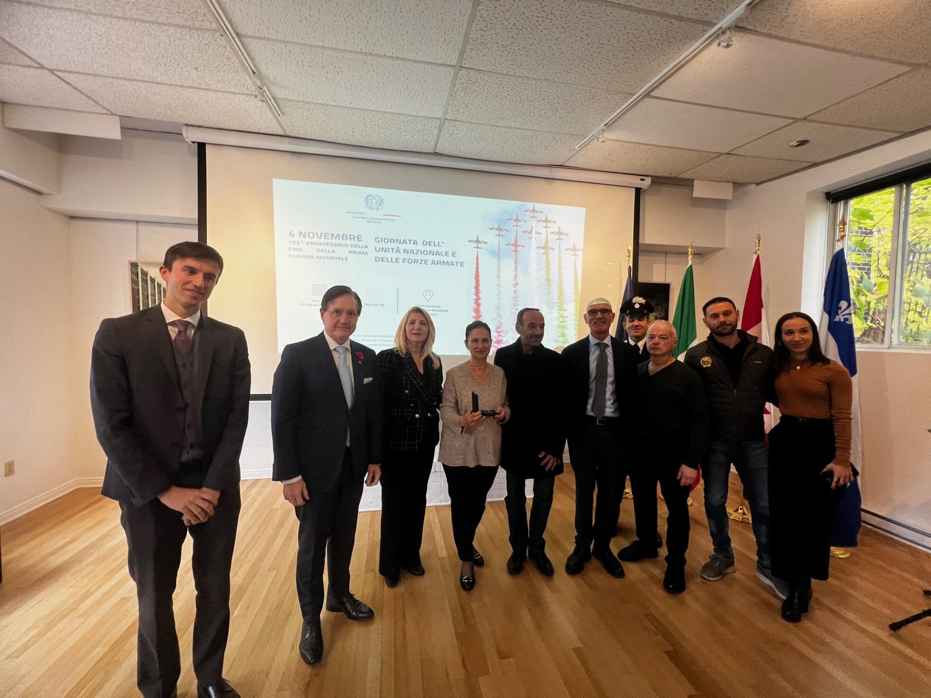 Dopo gli inni nazionali italiano e canadese, è stato trasmesso il video realizzato per l’edizione di quest’anno dal Ministero della Difesa. Il Console Generale ha preso la parola per ricordare ai presenti – autorità, membri della Federazione delle Associazioni Ex Militari Italiani ed esponenti della collettività – l’importanza di questa giornata nella nostra memoria collettiva, sottolineando il contributo fondamentale che le Forze Armate svolgono per garantire la pace e la sicurezza del nostro Paese.